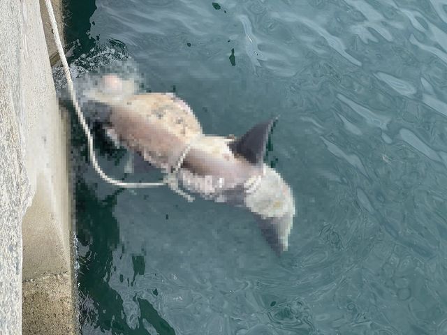 해경은 사체를 줄로 고정해 부두 안벽에 임시 보관한 뒤 이날 오후 2시경 해당 지자체에 인계할 예정이다. 아울러 정확한 종을 확인하기 위해 국립수산과학원에 확인을 요청한 상태다.