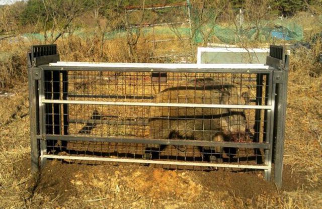 포획틀로 잡은 금정산 멧돼지. / 연합뉴스