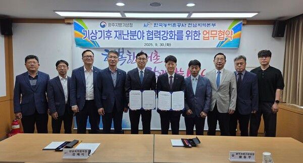 광주지방기상청은 30일 한국농어촌공사 전남지역본부와 기상재해 예방과 농어촌 녹색성장을 지원하기 위한 업무협약을 체결했다고 밝혔다.