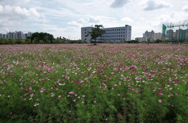 | ▲ 남악·오룡지구 유휴지에 조성된 코스모스 꽃밭 |
