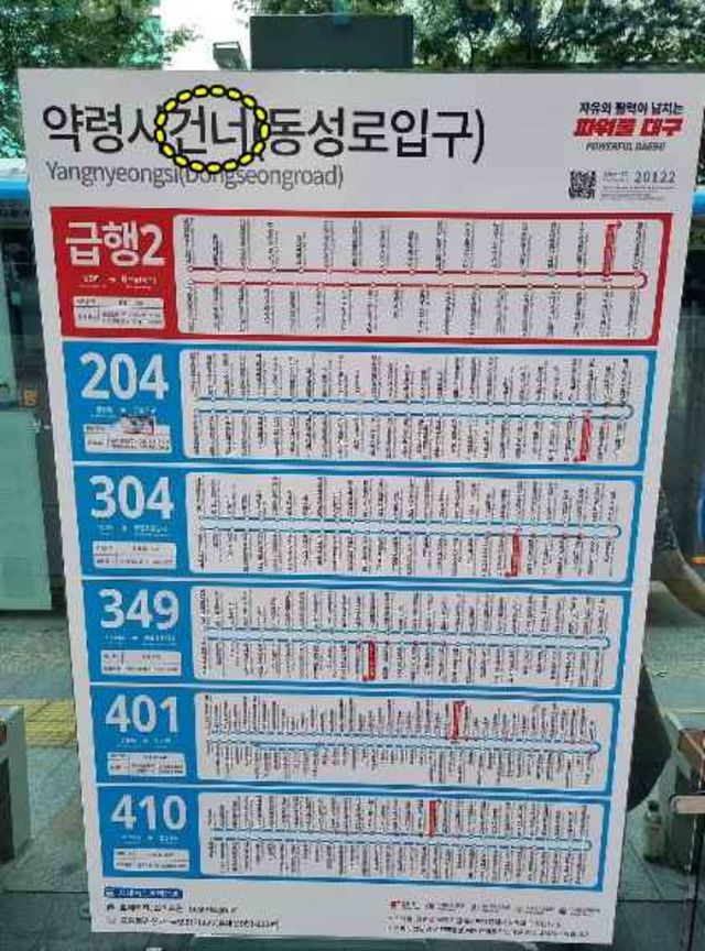 대구 지역 버스정류장 특장점. 시민들에게 편리함을 선사하고 있는 '지명+앞' 표현. / 유튜브 '대구맛집행행사'