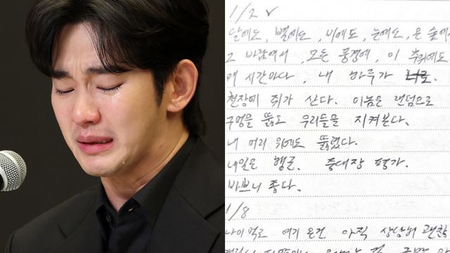 배우 김수현(왼), 2018년 1월 2일 김수현 배우 군 시절 일기의 첫 페이지. / 뉴스1, 유튜브 '진격의고변 進撃の高弁 / Korean Legal Titan'