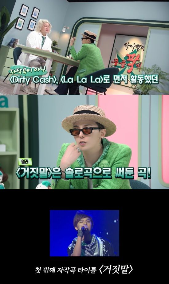 공개된 영상에서 강호동은 "모든 노래를 직접 만드셨더라. 혹시 다른 사람 노래가 다 별로였나"라고 물었고, 지드래곤은 "그렇지는 않았고, 사실 데뷔곡이 '거짓말'이 아니"라고 정정했다.