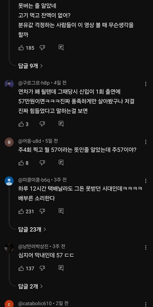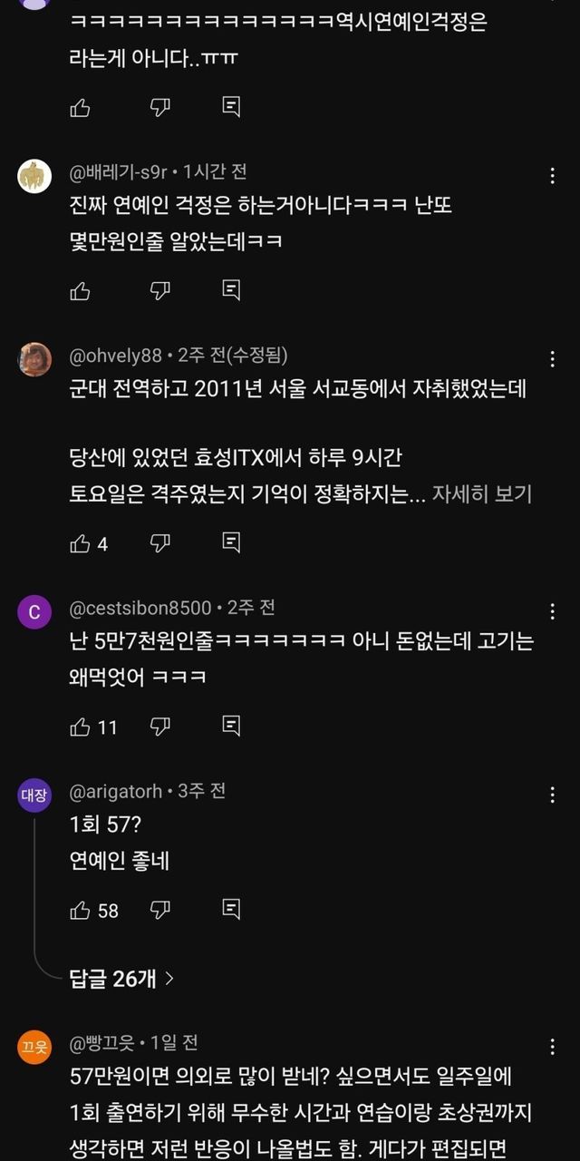 1회출연료 57만원
