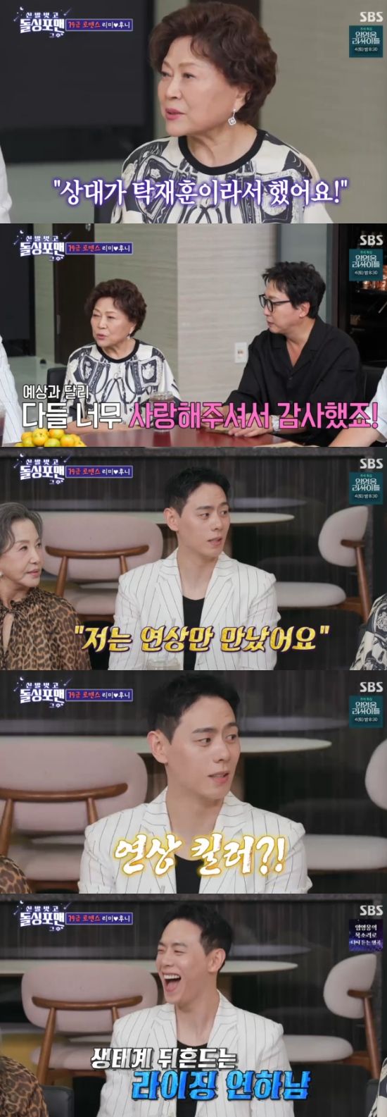 이날 '마이턴'에서 연상연하 커플을 연기했던 김용림과 탁재훈의 투샷에 모두가 즐거워했다. 김용림은 "상대가 탁재훈이라서 한거다. 너무 부끄러웠는데, 반응이 좋아서 감사하다"고 웃었다.