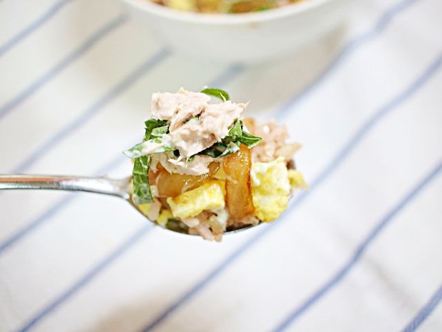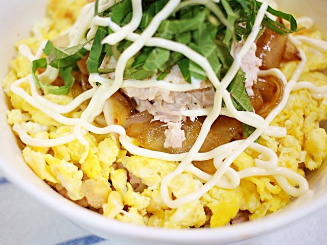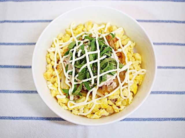 한그릇 안에 모두 담긴 참치마요덮밥 완성이에요.