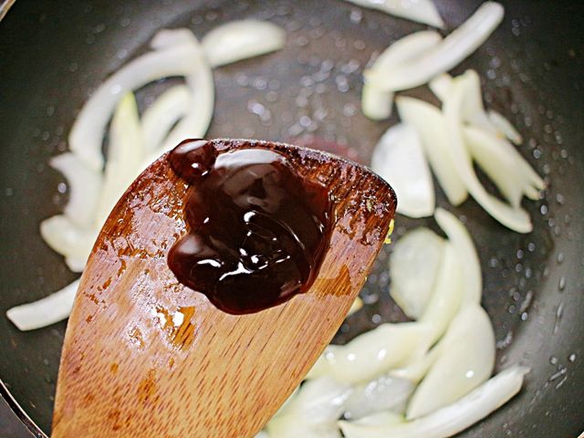 양파가 살짝 투명해지면 굴소스 1티스푼 넣어서 볶아주세요.