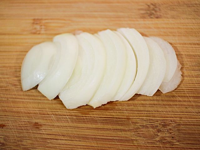 팬에 기름 살짝 두르고 채 썬 양파를 볶아요.