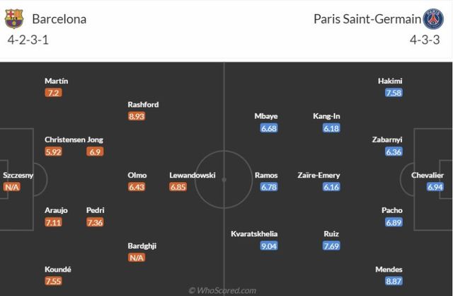 바르셀로나는 4-2-3-1 포메이션의 최전방에 로베르트 레반도프스키, 2선에 마커스 래시포드, 다니 올모, 루니 바르다그지가 자리할 것으로 예상했다. 3선에는 프렌키 더 용과 페드리가 선발 출전할 것으로 봤다.