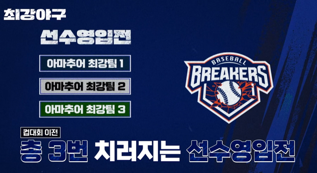 기존에는 팀 ‘최강 몬스터즈’가 아마추어 팀들과 겨뤄 승률 7할을 달성해야 다음 시즌을 이어갈 수 있었다면 2025 시즌은 ‘최강 컵대회’를 개최하는 것으로 변화를 줬다. ‘최강 컵대회’는 브레이커스, 독립리그 최강팀, 대학리그 최강팀, 고교리그 최강팀 총 4팀이 예선리그를 치르고 상위팀끼리 우승팀을 가리는 토너먼트 형식으로, 브레이커스는 토너먼트에서 우승해야만 ‘최강’ 타이틀을 얻을 수 있는 것으로 변경됐다.
