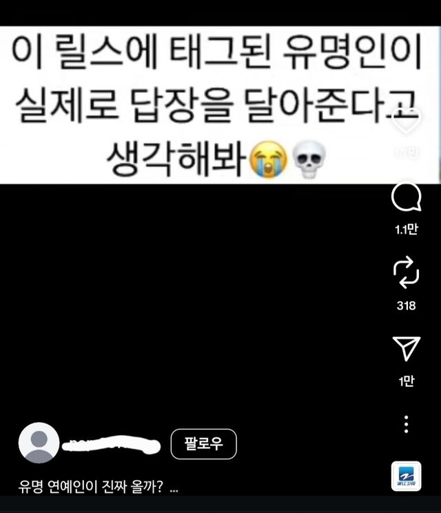 유명인 아무나 태그해서 뻘소리 해보라는 릴스