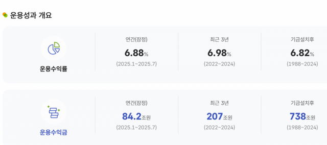 올해 1~7월 수익금 84.2조원 수익률 6.88%