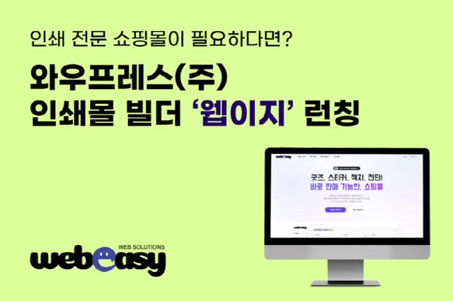 와우프레스 관계자는 “복잡했던 인쇄몰 구축을 클릭 몇 번으로 해결할 수 있는 시대를 열겠다”며, “웹이지를 통해 많은 인쇄 사업자가 손쉽게 온라인 비즈니스를 시작할 수 있을 것”이라고 말했다.