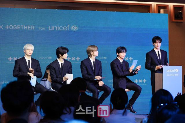 1일 소속사 빅히트뮤직에 따르면 투모로우바이투게더는 전날 미국 뉴욕에서 유니세프 본부 및 한국위원회와 전 세계 아동·청소년의 마음건강을 위한 글로벌 캠페인 ‘투게더 포 투모로우’(TOGETHER FOR TOMORROW) 파트너십을 체결했다.