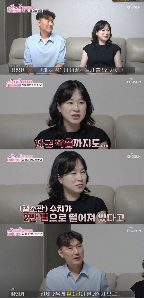 뉴시스 보도에 따르면, 지난달 30일 방송한 TV조선 예능 프로그램 '우리 아기가 또 태어났어요'에선 혈소판 감소증 산모 출산 과정이 공개됐다.