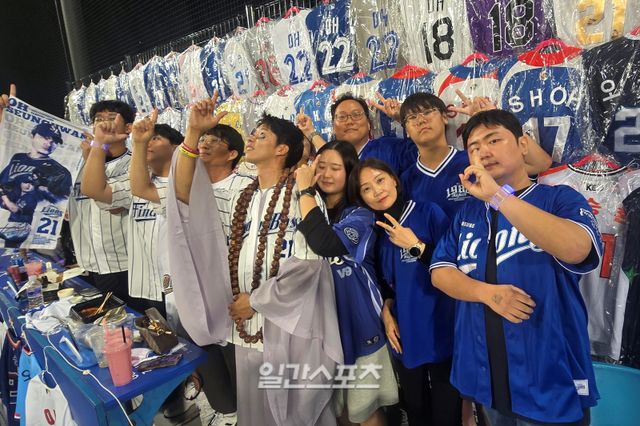 "이 유니폼들이요? 지금 제가 입은 옷까지 합해서 총 89벌입니다. 5년 전 오승환 선수가 한국에 복귀했을 때부터 특별한 응원 방법을 찾다가 유니폼을 사들이기 시작했는데 여기까지 왔죠(웃음). 해외 유니폼은 경매 사이트 같은 데서 찾아보고 구입했는데. 정확히 계산은 안해봤지만 천만원 가까이 들지 않았을까요. 이렇게 쭉 진열해 놓은 거 보니까 뿌듯하고, 오승환 선수가 마지막에 (유니폼들의) 기를 잘 받았으면 좋겠습니다."