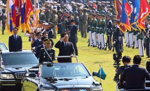 이 대통령은 "병력 숫자에 의존하는 인해전술식 과거형 군대는 이제 충분치 않다"며 "내년도 국방예산을 전년 대비 8.2%로 대폭 늘어난 66조3000억원으로 편성해 첨단 무기체계 도입과 게임체인저가 될 인공지능(AI), 드론, 로봇 등 첨단기술에 집중투자 할 것"이라고 말했다.