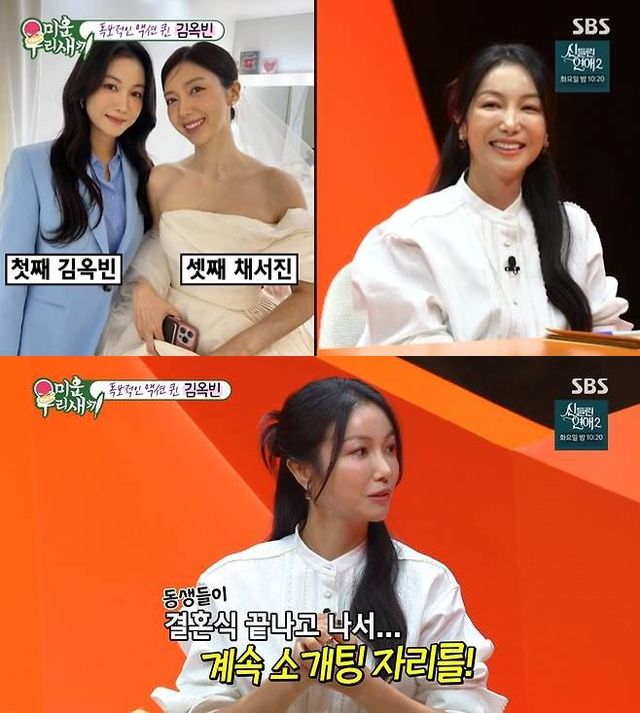 세 자매 중 첫째인 김옥빈은 채서진의 결혼으로 자매 중 유일한 '솔로'가 됐다. 특히 채서진과 22년간 함께 살았다는 김옥빈은 유튜브 채널 '고운옥빈'을 통해 "굉장한 상실감을 느낀다. 내 일부가 떨어져 나간 것 같다"며 공허한 마음을 고백하기도 했다.