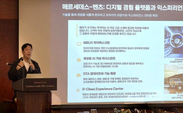 이번 세미나는 NH투자증권이 예탁자산 300억 원 이상 패밀리오피스 서비스 가입 고객 중 소수의 VIP만을 초청해 진행한 프라이빗 행사로, 강병희 차봇모빌리티 부대표가 연사로 초청되어 ‘경험으로 재편되는 럭셔리카 시장’을 주제로 강연을 펼쳤다.