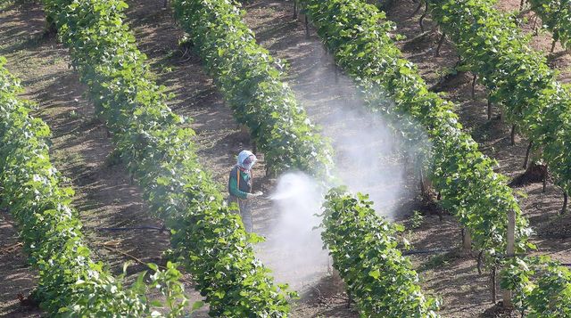 한 포도밭에서 농부가 늦은 장마와 소나기로 인한 포도 병충해를 예방하기 위해 방제 작업을 하고 있다. 기사 이해를 돕기 위한 자료 사진 / 뉴스1