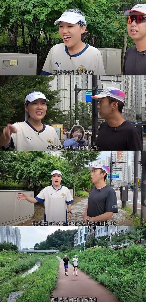 이은지는 "나도 원래 한창 먹을 때 65㎏였는데 지금 56㎏다. 러닝하면서 빠졌다"고 했다.