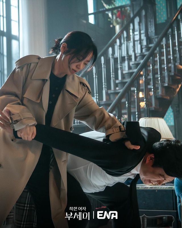 ENA 〈착한 여자 부세미〉에서 전여빈이 맡은 캐릭터의 본명은 김영란입니다. 그의 삶은 팍팍하고 무겁습니다. 억대의 빚을 지고 지독한 가난 속에서 메마른 삶을 사는 소위 ‘흙수저’로 등장하죠. 그는 가성그룹 회장 경호원으로 취직한 뒤 인생 일대의 기회를 마주하게 됩니다. 바로 가성그룹 회장인 가성호 역의 문성근이 건넨 달콤한 제안인데요. 자신과 결혼해 단 3개월 동안 계약 결혼의 아내로 살아남으면 막대한 유산을 받을 수 있다는 것이죠. “인생 리셋까지 카운트다운 3개월.” 이에 전여빈은 제안을 받아들이고 완벽한 스펙을 가진 유치원 교사 부세미로 변신해 제2의 인생을 삽니다. 벼랑 끝 인생에서 거대한 복수극에 합류하게 된 캐릭터를 맡은 전여빈 배우의 매력을 살펴봅니다.