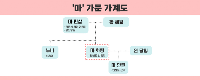 텐센트의 창업주는 마화텅 CEO다. 그는 텐센트 설립 이후 지금까지 경영을 진두지휘하고 있다. 재산 규모는 566억달러(약 83조원)에 달하는 것으로 추산됐다. 광둥성 출신인 마화텅 CEO는 공산당원 부친을 둔 '금수저'로 알려졌다. 그의 부친 마천술(马陳術)은 광둥성 선전의 항만 관리자로 재직하면서 중국 내 무역 분야에서 상당한 입지를 쌓았다. 마화텅이 텐센트를 창립할 당시 마천술의 네트워크가 상당한 보탬이 됐던 것으로 전해진다. 또한 그는 아내인 왕당팅(王丹婷) 사이에서 딸인 마만린을 두고 있다. 다만 그의 가족에 대한 정보는 철저히 베일에 가려져 있다.