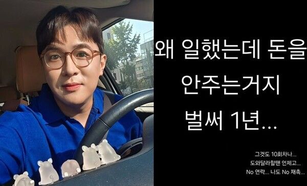 뉴시스 보도에 따르면, MC배는 1일 자신의 소셜미디어에 "왜 일했는데 돈을 안 주는 거지. 벌써 1년"이라고 적었다.