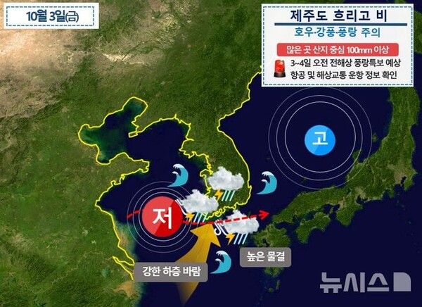 추석 연휴 초반 제주에 강풍과 풍랑을 비롯해 국지성 호우(좁은 지역에 내리는 강한 비)가 예보됐다.