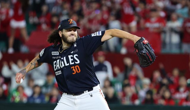지난 1일 인천 SSG랜더스필드에서 열린 2025 프로야구 한화 이글스와 SSG 랜더스의 경기. 한화 선발 폰세가 6회 말 역투하고 있다 / 연합뉴스