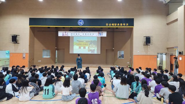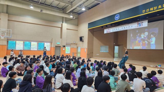 안산해양초등학교(교장 조명숙)는 9월 23일(화) 오후 1시부터 2시 30분까지 해오름관(체육관)에서 5·6학년 학생 154명을 대상으로 ‘작가와의 만남’ 프로그램을 운영했다. 이번 행사는 학생들에게 역사와 문화의 중요성을 쉽고 재미있게 이해시키고, 독서를 통한 사고력 신장과 자기 성찰의 기회를 제공하기 위해 마련되었다.