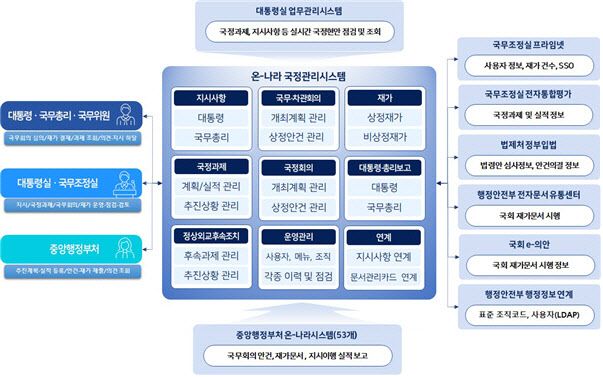국정관리시스템은 대통령 재가, 보고사항, 지시사항, 정상외교 추진 현황, 국무회의 운영 등 핵심 기능을 담당하는 시스템으로 대통령실과 각 중앙부처가 모두 활용한다. 해당 시스템이 마비되면 대통령 보고 및 재가 절차가 전면 수기로 전환돼 국가 운영에 차질이 불가피하다.