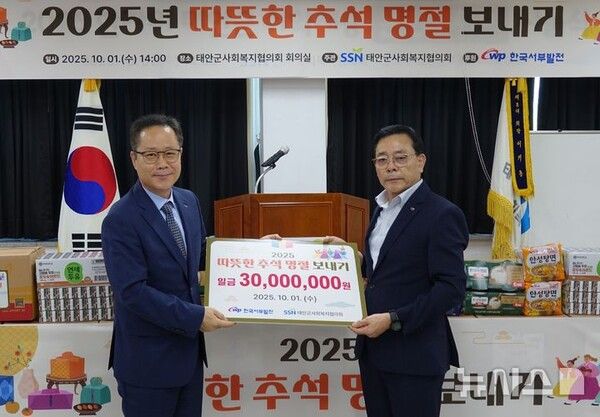 한국서부발전은 민족 최대 명절인 추석을 앞두고 지역 내 취약계층을 돕기 위해 태안군사회복지협의회를 방문해 3000만 원의 지원금을 기탁했다고 2일 밝혔다.