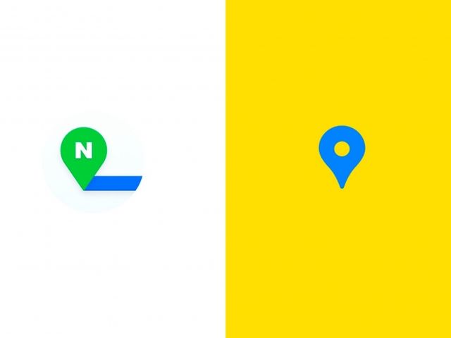 네이버 지도(좌측), 카카오맵(우측) 앱 갈무리.