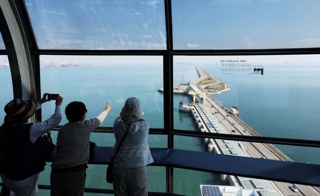 시화나래 달전망대를 찾은 시민들이 시화호를 바라보고 있다. / 연합뉴스