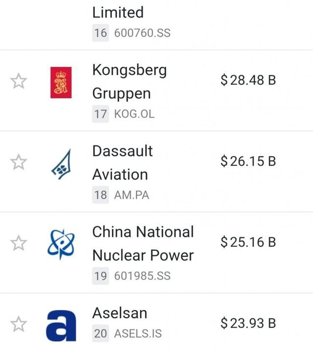 현재 전세계 방산업체 시가총액 톱20중 거의 절반이 유럽 방산업체인 상황.