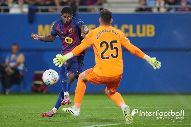 이날 4-2-3-1 포메이션을 꺼내 들었던 바르셀로나. 래시포드는 다니 올모, 라민 야말과 함께 2선에 배치됐다. 바르셀로나가 먼저 앞서 나갔다. 래시포드의 발끝에서 득점이 비롯된 것. 전반 18분 래시포드가 문전으로 패스를 연결했고, 페란 토레스가 넘어지며 슈팅한 끝 골망을 갈랐다.