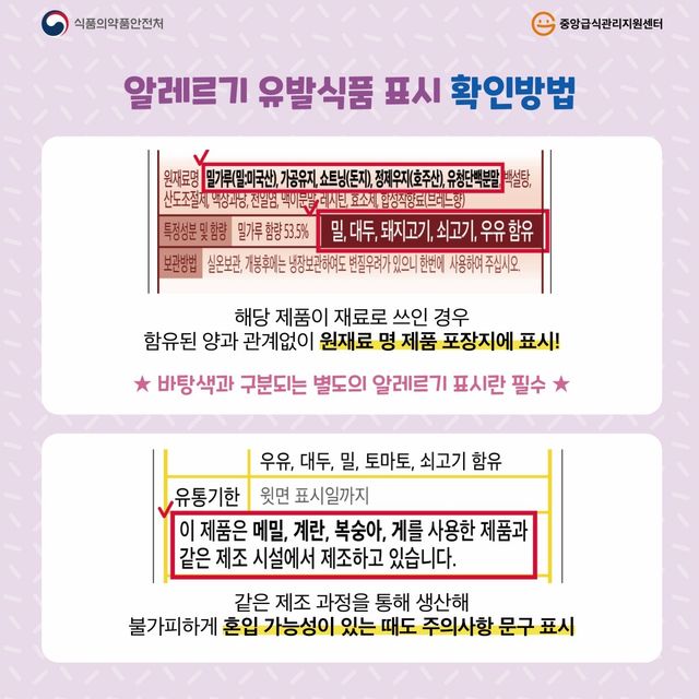 알레르기 유발식품 표시 확인방법 / 식품의약품안전처 카드뉴스 캡처
