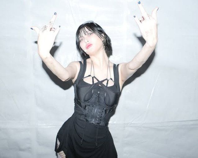 공개된 사진 속 현아는 공연장 뒤편에서 포즈를 취하고 있는 모습이다.