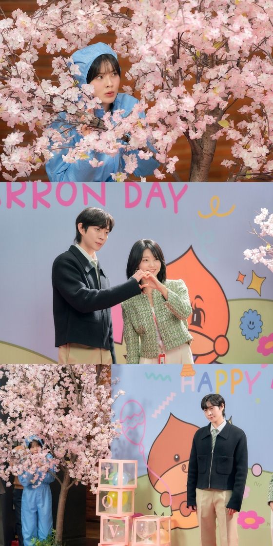 사진 속 함박사는 다희와 나란히 서서 손하트를 만들고 있다.마론제과 내에서도 독보적인 비주얼로 꼽히는 두 사람의 조합이지만,정작 시선을 끄는 건 따로 있다.벚꽃나무 뒤로 몸을 숨긴 다해다.파란 옷차림 덕에 다해는 유독 눈에 띄고,함박사와 다희를 바라보는 눈빛엔 찌릿한 질투심이 담겨 웃음을 자아낸다.세 사람 사이에 흐르는 묘한 기류,과연 무슨 일이 있었던 걸까.