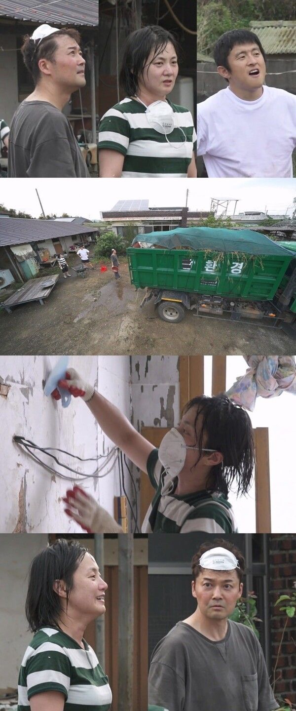 이어 세 사람은 마스크를 끼고 누수로 인해 곰팡이가 핀 조부모님 방 벽지를 뜯어내는 고된 작업에 나섰다. 평소 도배 기술을 배우며 조부모님 댁을 손봐드리고 싶다고 밝혔던 박나래는 쌓아온 도배 실력을 발휘하며 능숙하게 벽지를 뜯어냈다. 그는 오래된 벽지를 뜯어내던 중 "너무 속 시원해"라며 홀가분한 표정을 지었다.