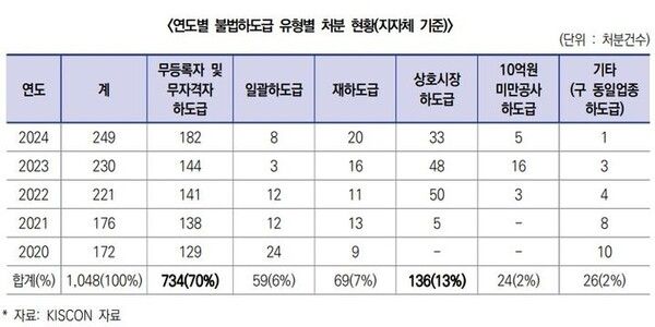 뉴시스 보도에 따르면, ◆집중 단속 결과, 민간 현장과 소규모 공사에서 불법 하도급 '만연'