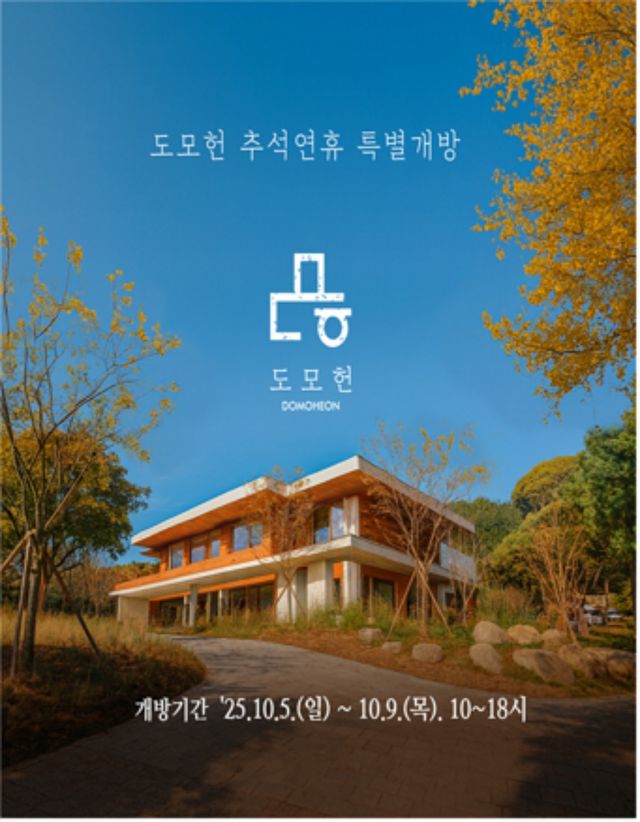 부산시는 추석 연휴 기간인 5일부터 9일까지 복합문화공간 ‘도모헌’을 시민들에게 특별 개방한다고 지난달 25일 밝혔다. 개방 시간은 오전 10시부터 오후 6시까지이며, 귀성객과 관광객을 포함해 누구나 무료로 방문할 수 있다.