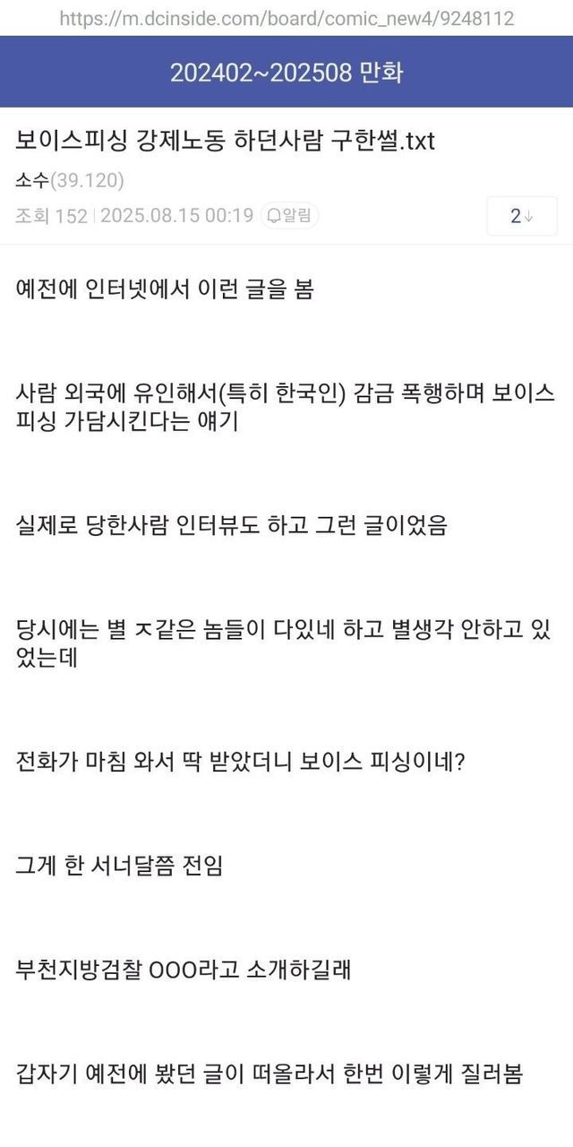 보이스피싱 강제노동 당하던 사람 구한 썰
