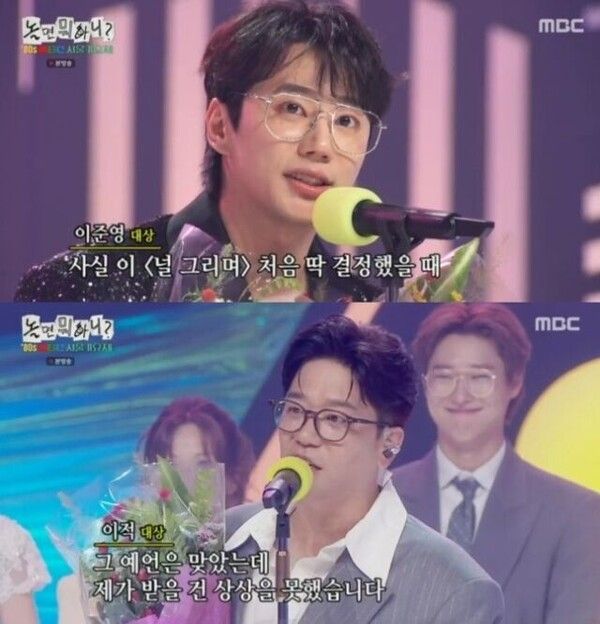 [메디먼트뉴스 김민정 기자] MBC '놀면 뭐하니?'의 '80s MBC 서울가요제' 2부 경연 결과, 가수 이적과 배우 이준영이 대망의 공동 대상을 수상하는 이변을 낳았다. 이날 시청자 투표로 선정되는 인기상부터 우정상, 동상, 은상, 금상까지 영광의 수상자들이 공개되며 유쾌한 시상식이 펼쳐졌다.
