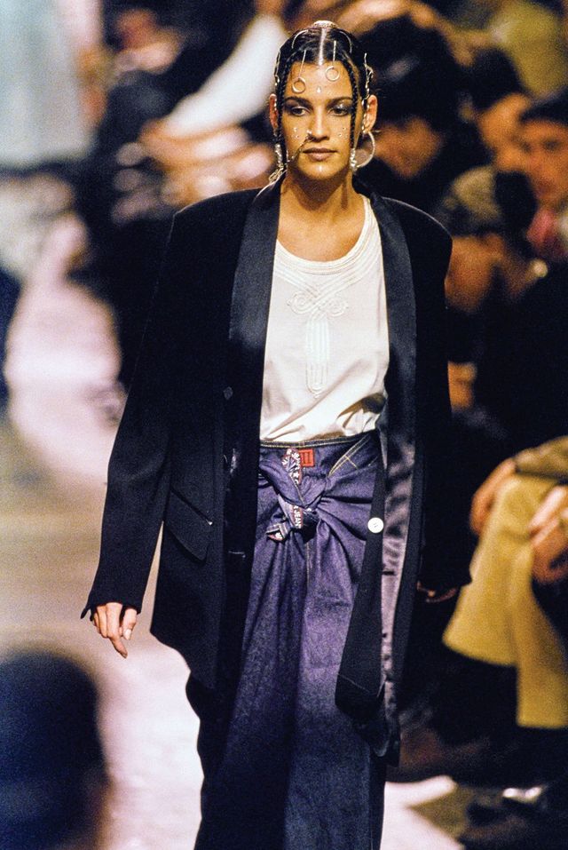 줄리앙 도세나 어렸을 때 TV에서 장 폴 고티에를 처음 봤어요. 앙투안 드 콘과 함께 공동 MC를 맡은 레전드 프로그램 〈Eurotrash〉에서였죠. 이후 1993년, 저녁 8시 방송 리포트에서 백스테이지 속 그의 모습을 다시 접했습니다. 방송은 ‘레 타투아주(Les Tatouages, 문신들)’란 주제의 1994 S/S 장 폴 고티에 쇼를 다루고 있었죠. 고티에는 인디언을 테마로 티셔츠와 청바지에 피어싱과 타투를 프린트했는데, 비로소 전 디자이너라는 직업이 어떤 것인지 이해할 수 있었어요. 저도 그 길을 걷고 싶다는 마음이 생겼고요. 특히 고티에는 친구들과 즐겁게 일하는 것처럼 보였습니다. 그 에너지와 즐거움, 두근거림이 화면 너머로 전해져 저 역시 도전하고 싶다는 마음이 강하게 들었죠.