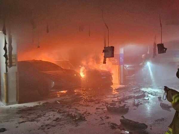 뉴시스 보도에 따르면, "전기차에 연기가 난다"는 관리사무소 직원 신고를 받고 출동한 경기소방은 장비 19대와 소방관 57명을 투입해 오전 8시43분께 큰 불길을 잡았다.