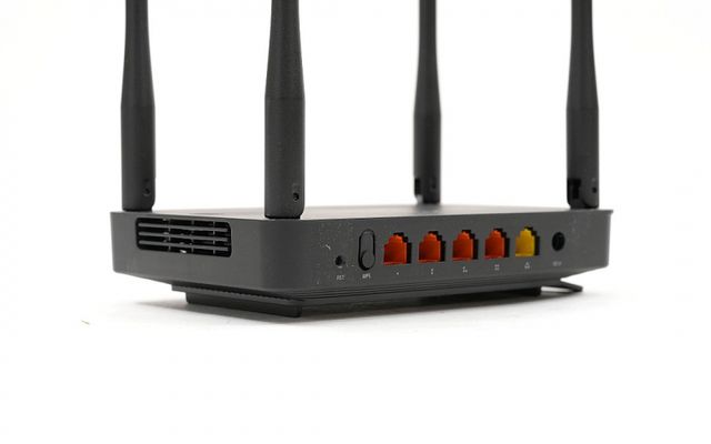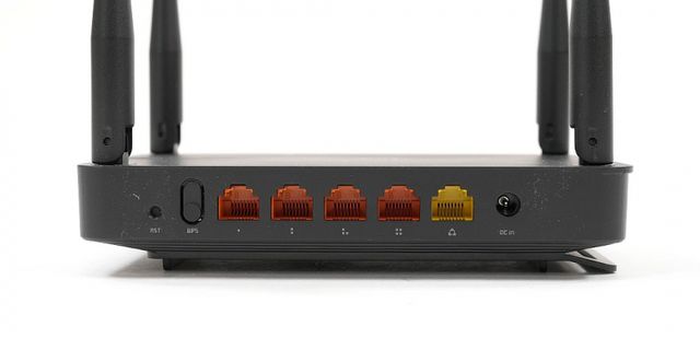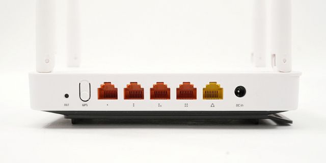 AX2004T의 후면에는 주요 포트와 버튼이 깔끔하게 정렬되어 있다. 왼쪽부터 리셋(RST) 버튼과 WPS 버튼이 자리하고, 그 옆으로 1Gbps 속도를 지원하는 4개의 LAN 포트(주황색)와 1개의 WAN 포트(노란색)가 배치되어 있다. 우측 끝에는 전원 공급을 위한 DC IN 단자가 위치한다. 각 포트는 색상으로 구분되어 있어 초보자도 쉽게 연결할 수 있으며, 전체적으로 직관적이고 실용적이다.