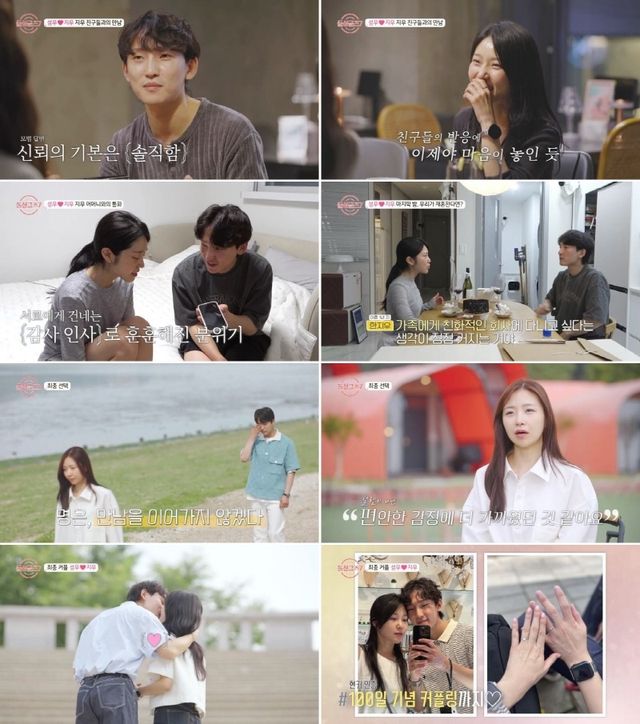 성우X지우는 이견 없이 ‘최종 선택’에서 서로를 택했다. 또 다시 서로를 마주한 두 사람은 포옹과 뽀뽀를 나누며 행복한 엔딩을 장식했다. 성우는 “앞으로 좋은 소식이 있도록 최선을 다 하겠다”는 소감을 전해 5MC를 흐뭇하게 만들었다.