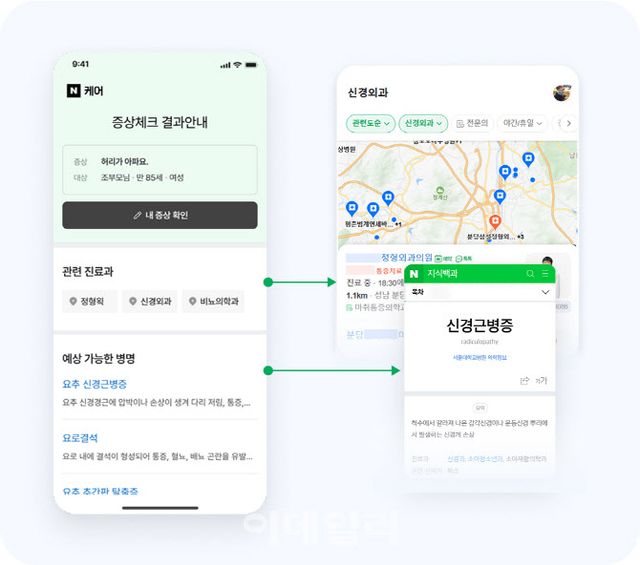 한편 네이버는 사내부속의원에서 네이버케어를 ‘사전 문진’ 형태로 고도화 진행 중이다. AI, 의학 데이터베이스를 활용해 환자가 사전에 입력한 증상 정보를 의학 용어로 변환하고, 병원 의료 정보 시스템(EMR)으로 전달해 의료진의 업무 효율화, 환자의 의료 서비스 만족도 향상에 기여하고 있다.